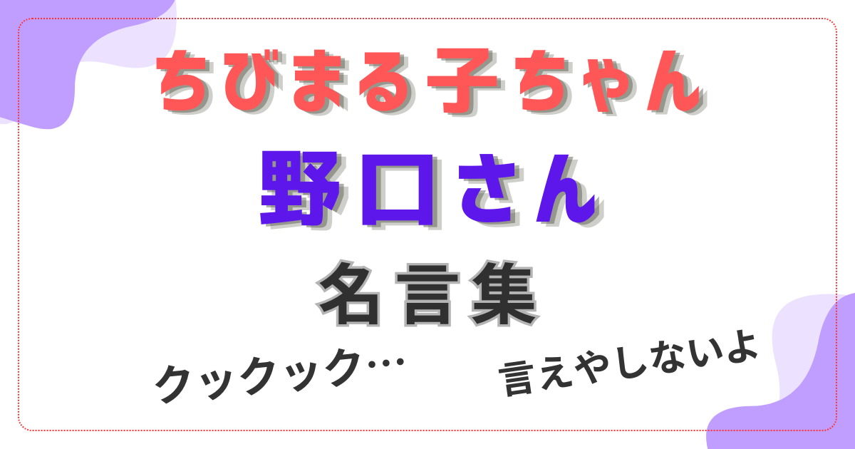 ちびまる子ちゃん 野口さんの名言・セリフ集|兄との関係や口ぐせ、大人に刺さる理由