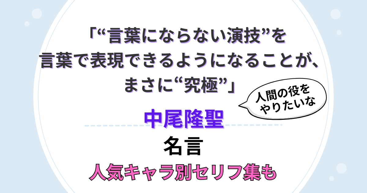 中尾さんは、声優はセリフを読むだけでなく、そのキャラクターの呼吸や空気感まで表現する仕事だと考えています。