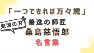 アニメ、漫画の名言泣いていい、逃げてもいい、 善逸の師匠 じいちゃんの名言集! ※ この記事は作成過程で一部AIツールを活用していますが、運営者独自の視点や考察を交え、責任を持って内容を確認・編集したうえで公開しています。今回は鬼滅の刃、我妻善逸の師匠”じいちゃん”の名言を紹介します。じいちゃんこと桑島慈悟郎(くわじま... 2026.02.25アニメ、漫画の名言