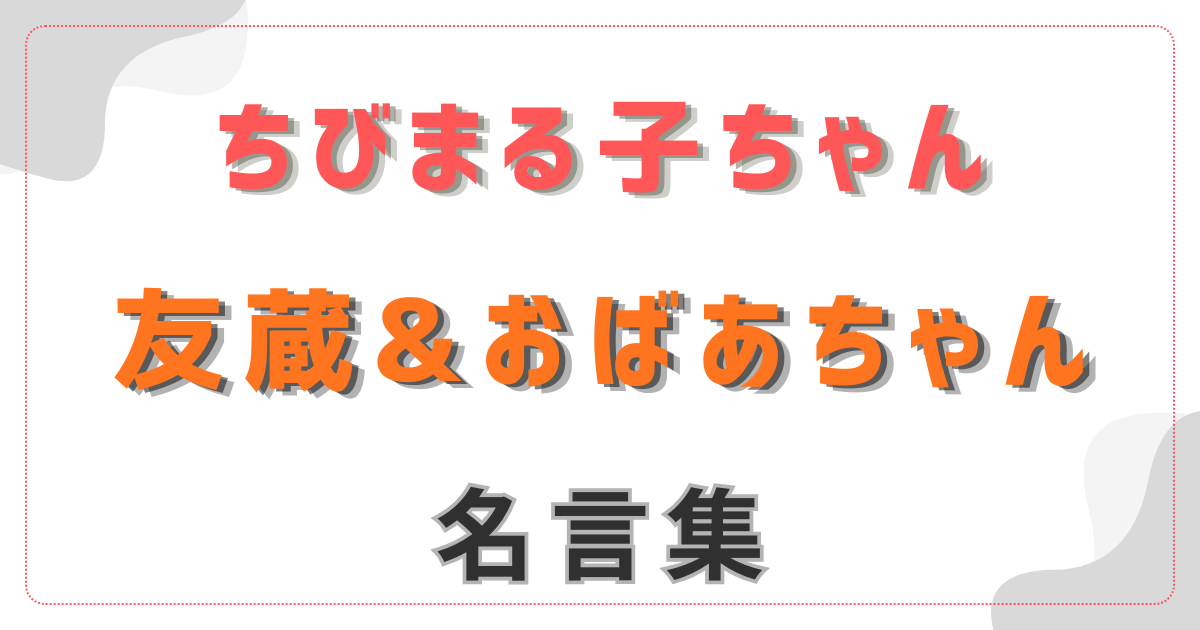 『ちびまる子ちゃん』の友蔵とおばあちゃんの名言を振り返ると、そこには笑いと共に、人生を少しだけ楽にするヒントが散りばめられていました。